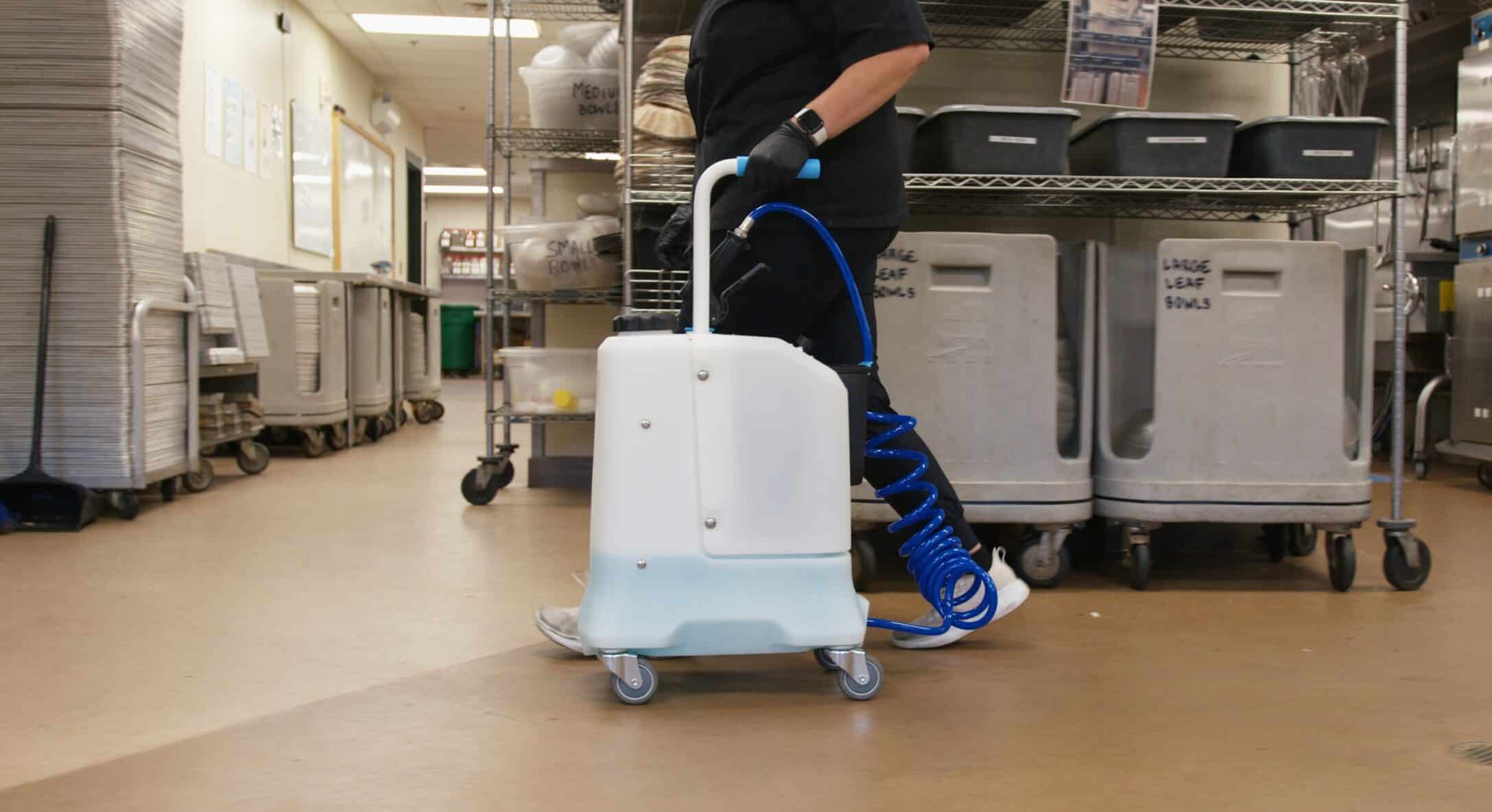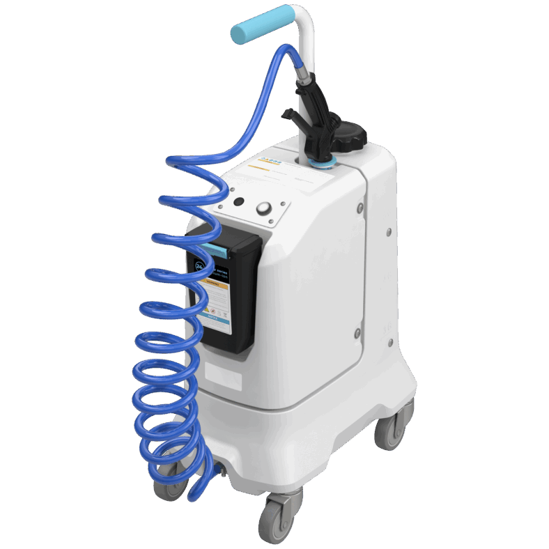 A 5 gallon lithium-ion battery-powered, mobile, pre-mix spray unit. The Rover is equipped with 4 wheels, coiled tubing, and heavy duty trigger gun.